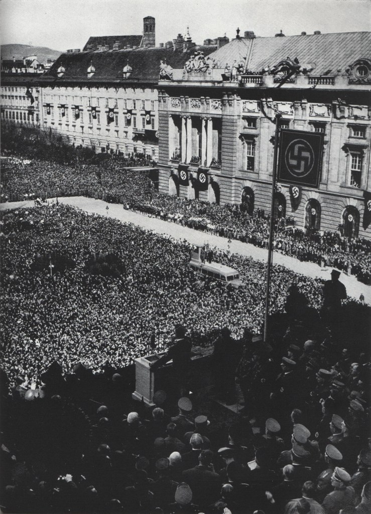 A la lecture de ces répliques, on comprend alors aisément le malaise ressenti par certains mais l’équipe en charge de la mise en scène va aller plus loin encore en intégrant, en quatrième de couverture du livret, une photographie de la Place des Héros alors noire de monde, prise le jour du discours d’Hitler.