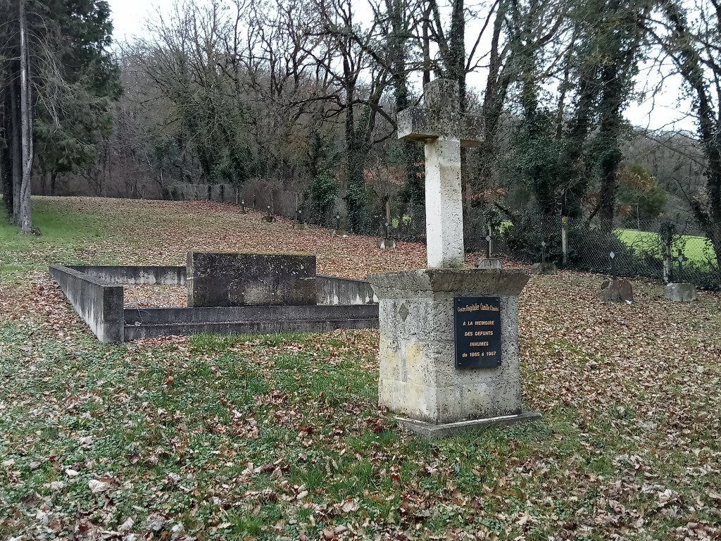 En février 2023, alors en déplacement à Bordeaux, je me suis arrêté dans le petit cimetière jouxtant l’établissement de soins de Breuty. Il ne faisait pas bien chaud et le terrain était humide mais je me souviens m’être dit qu’en période estivale, ce lieu devait être paisible à l’ombre des grands arbres. La partie inférieure de la parcelle rassemble des tombes individuelles. Elisabeth a également eu droit à un tel monument au moment de son inhumation. La croix sous laquelle elle reposait portait alors le numéro 296 selon le service d’Etat civil de la commune. Après quelques décennies pourtant, sa tombe a été relevée et ses restes transférés dans un ossuaire situé plus en hauteur. Un élément m’a pourtant profondément marqué en foulant le sol de ce petit cimetière : son nom ne figure nulle part. Après avoir été mise au ban de la société par son internement, sa mort a été rendue totalement anonyme.